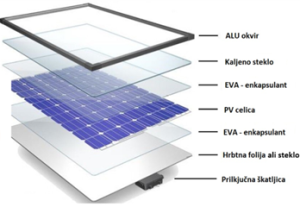Slika 2: Zgradba tipičnega fotonapetostnega modula